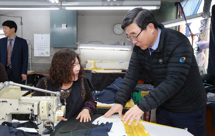 (서울=포커스뉴스) 이기권 고용노동부 장관이 3일 서울 성북구 봉제업 사업장인 서진나우를 방문해 사업주와 근로자들을 만나 격려하고 애로사항을 청취하고 있다. 이 장관은 어려운 상황속에서도 묵묵히 최선을 다해온 노고에 감사를 표하며,‘지역산업 맞춤형 일자리창출 지원사업’ 등을 통해 적극 지원할 것임을 약속했다. <사진제공=고용노동부>