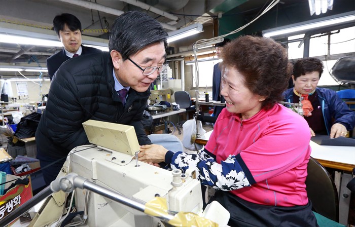 (서울=포커스뉴스) 이기권 고용노동부 장관이 3일 서울 성북구 봉제업 사업장인 서진나우를 방문해 사업주와 근로자들을 만나 격려하고 애로사항을 청취하고 있다. 이 장관은 어려운 상황속에서도 묵묵히 최선을 다해온 노고에 감사를 표하며,‘지역산업 맞춤형 일자리창출 지원사업’ 등을 통해 적극 지원할 것임을 약속했다. <사진제공=고용노동부>