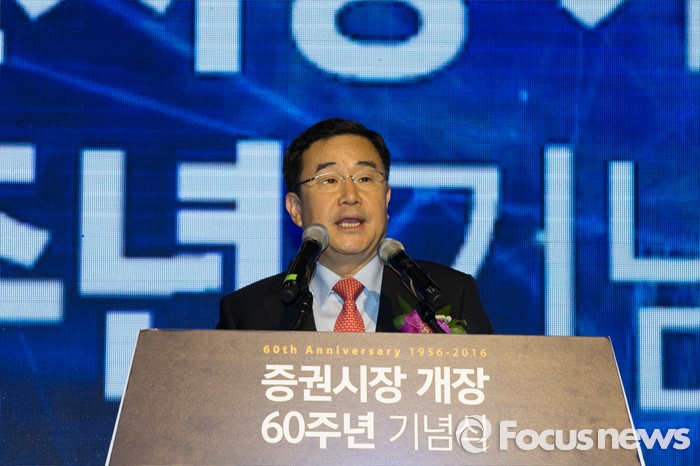 (서울=포커스뉴스) 김정훈 새누리당 정책위원장 의장이 3일 오후 서울 영등포구 63빌딩에서 열린 증권시장 개장 60주년 기념식에서 축사를 하고 있다. 이번 행사는 지난 1956년 3월 3일 대한증권거래소의 출범과 함께 문을 연 한국 증시의 60년 발자취를 기념하기 위해 마련됐다.
