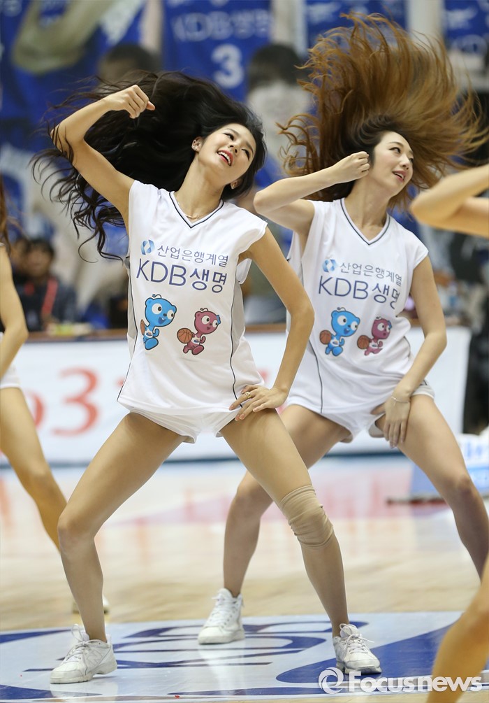(구리=포커스뉴스) 3일 구리시체육관에서 열린 2015~2016 여자프로농구 KDB생명- KEB하나 경기에서 KDB생명 치어리더 박기량이 흥겨운 춤으로 경기장의 열기를 고조시키고 있다.