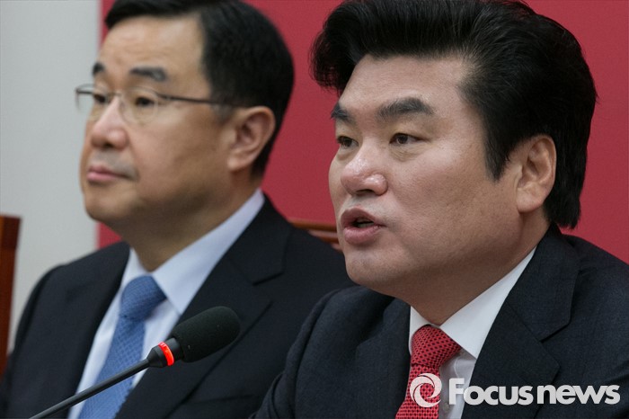 (서울=포커스뉴스) 원유철(오른쪽) 새누리당 원내대표가 4일 오전 서울 여의도 국회에서 열린 원내대책회의에 참석해 모두발언하고 있다.