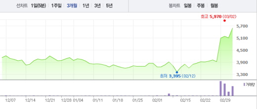 5일 연속 상승세를 기록했다가 전날 주가가 떨어진 비츠로테크도 회생에 성공했다. 비츠로테크는 전날보다 210원(4.09%) 오른 5350원에 거래중이다. 비츠로테크는 지난해 12월 한국항공우주연구원과 125억원 규모의 한국형발사체 연소기 제작(2단계 1차년도) 계약을 맺는 등 우주항공 분야에 진출한 상태다.