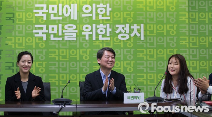 (서울=포커스뉴스) 국민의당 안철수 상임공동대표가 4일 오전 서울 마포구 국민의당 당사에서 열린 '국민의당과 함께하는 GO! 포럼'에 참석해 '젊은 행동 그룹' 멤버들과 인사를 나누고 있다.