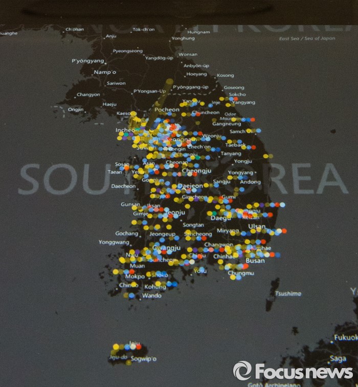 (서울=포커스뉴스) 4일 오전 서울 종로구 한국마이크로소프트에서 열린 '사이버보안센터 개관식'에서 설치된 컴퓨터 스크린에 악성코드(MALWARE) 분포도가 표시되고 있다.