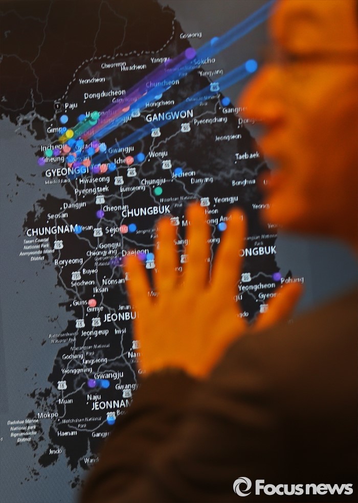 (서울=포커스뉴스) 한국마이크로소프트 사이버보안센터 오픈식이 열린 4일 오전 서울 종로구 더케이트원타워에서 관계자들이 악성코드 분포도를 확인하고 있다.