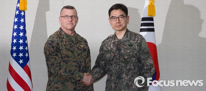 | △ 악수하는 장경수 정책기획관과 주한미군 기획참모부장 |