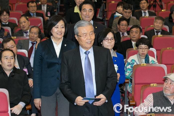 (서울=포커스뉴스) 김종인(앞) 더불어민주당 비대위 대표가 4일 오후 서울 여의도 국회 의원회관에서 열린 소상공인 20대 총선 정책공약 전달식에 참석하고 있다.