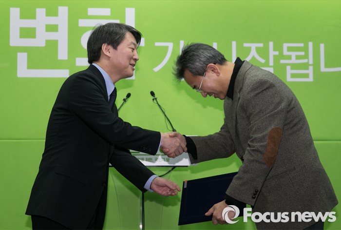 (서울=포커스뉴스) 안철수(왼쪽) 국민의당 상임공동대표가 4일 오후 서울 마포구 당사에서 열린 선거관리위원장 및 위원 위촉장 수여식에 참석해 위원장으로 위촉된 김종현 동아대학교 전임교수에게 위촉장을 전달하고 있다.