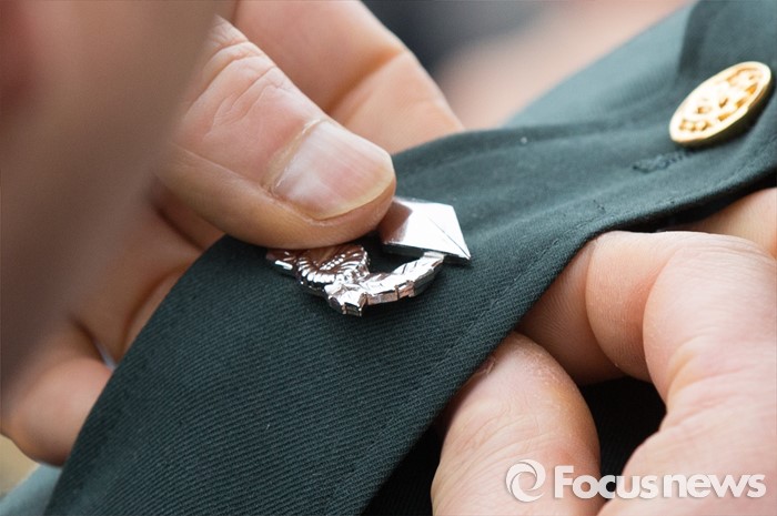(계룡=포커스뉴스) 4일 오후 충남 계룡대 연병장에서 열린 2016년 장교 합동임관식에서 가족들이 신임장교에게 계급장을 달아주고 있다.