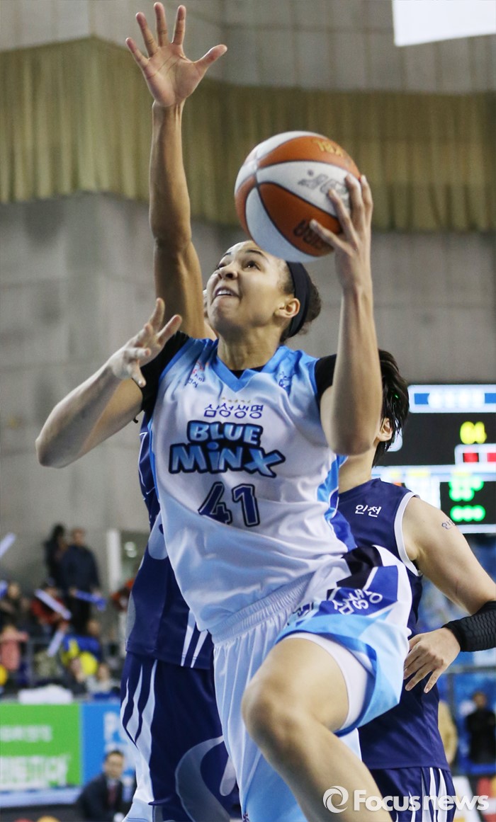 삼성생명은 외국인선수 테일러가 19득점을, 유승희가 11득점을 올렸다. 신한은행은 외국인선수 커리가 12득점으로 팀내 유일한 두자릿수 득점자가 됐다.(용인=포커스뉴스) 27일 용인실내체육관에서 열린 2015-2016 여자프로농구 삼성생명-신한은행 경기 연장전에서 삼성생명 스톡스가 레이업슛을 시도하고 있다. 2015.12.27 우정식 기자