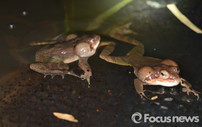 (영암=포커스뉴스) 전국적으로 봄비가 내리고 절기상경칩인 5일 전남 영암군 영암읍 월출산 자락에 겨울잠에서 깨어난 산개구리들이 배우자를 찾고 있다. <사진제공=김현태 양서류연구가>