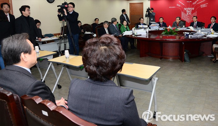 (서울=포커스뉴스) 6일 오전 서울 여의도 새누리당사에서 실시된 공천면접에 참석한 김무성 대표가 공천관리위원들의 질문을 받고 있다.