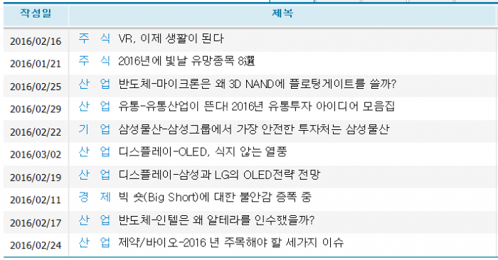 이상언 유안타증원 연구원은2016년 상반기 삼성디스플레이의 대형 OLED 투자가 시작되며 2017년 이후 OLED TV패널 생산능력이 빠르게 확대될 것으로 예상했다. 이에따라 대형 OLED로전환해 투자하는수혜 업체 위주로 비중확대 전략을 가져가자는 설명이다.