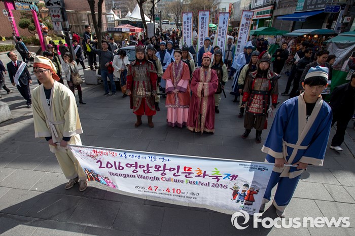이날 영암군민들로 구성된 퍼레이드 행렬은 백제시대 학자인 왕인박사가 일본 천황의 초청으로 천자문과 논어를 들고 일본으로 건너가기 위해 상대포(上臺浦)로 향하던 모습을 재현 했다.