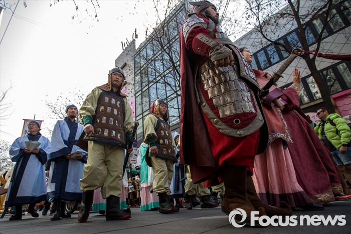 (서울=포커스뉴스) 6일 오후 서울 종로구 인사동에서 '2016 영암왕인문화축제'를 알리기 위한 '왕인박사 일본가오' 퍼레이드가 펼쳐지고 있다.