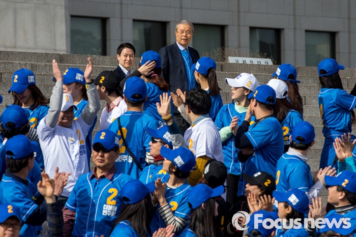 (서울=포커스뉴스) 김종인 더불어민주당 비상대책위원회 대표가 6일 오후 서울 영등포구 국회 본관 앞에서 열린 '더불어민주당 총선 응원가 뮤직비디오 촬영'에 참여하기 위해 촬영장으로 이동하자 당원들이 손을 흔들며 환호 하고 있다.