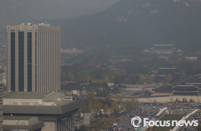 이어 "중국 중부지방에 부유한 황사는 상층 바람이 약해 이동속도가 느려 8일까지 황사가 관측되는 곳이 있겠다"며 "기류에 따라 매우 유동적이니 앞으로 발표되는 기상정보를 참고하기 바란다"고 덧붙였다.지난해 11월 서울 광화문광장과 경복궁 일대가 미세먼지로 가득하다. 김인철 기자