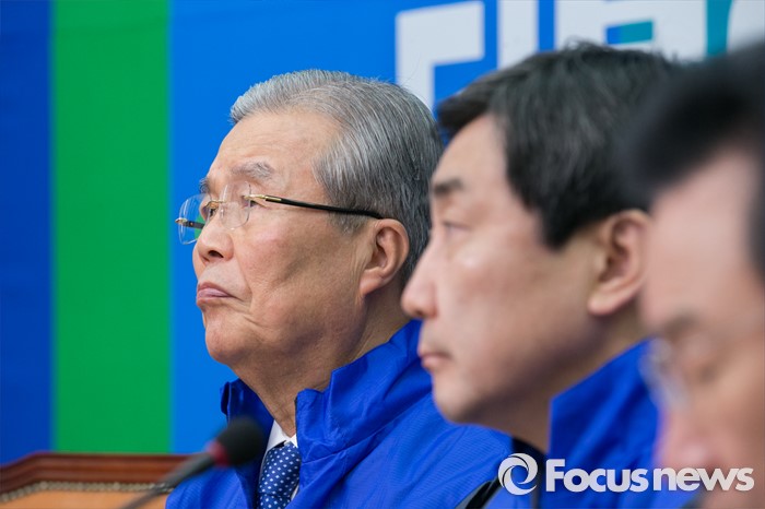 (서울=포커스뉴스) 김종인(왼쪽부터) 더불어민주당 비대위 대표, 이종걸 원내대표, 변재일 비대위원이 7일 오전 서울 여의도 국회에서 열린 비상대책위원회의에 참석해 생각에 잠겨 있다.