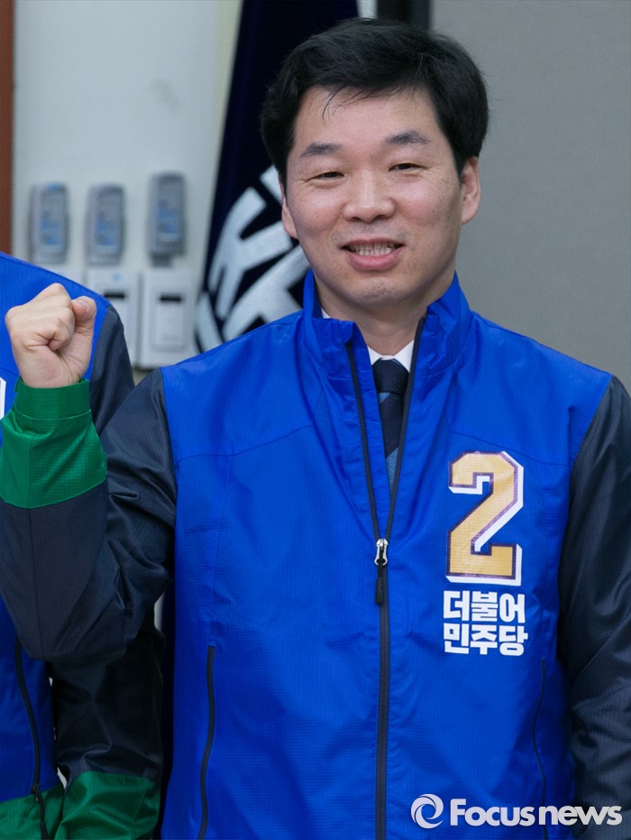 (서울=포커스뉴스) 20대 총선 경기 분당갑에 전략공천된 김병관 더불어민주당 비대위원이 7일 오전 서울 여의도 국회에서 비상대책위원회의에 앞서 20대 총선용 유니폼을 입고 취재진을 향해 포즈를 취하고 있다.