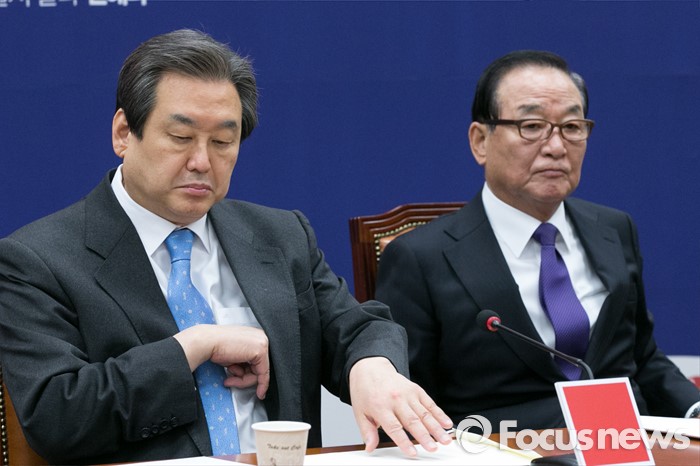 (서울=포커스뉴스) 김무성(왼쪽) 새누리당 대표와 서청원 최고위원이 7일 오전 서울 여의도 국회에서 열린 최고위원회의에 참석해, 생각에 잠겨 있다.