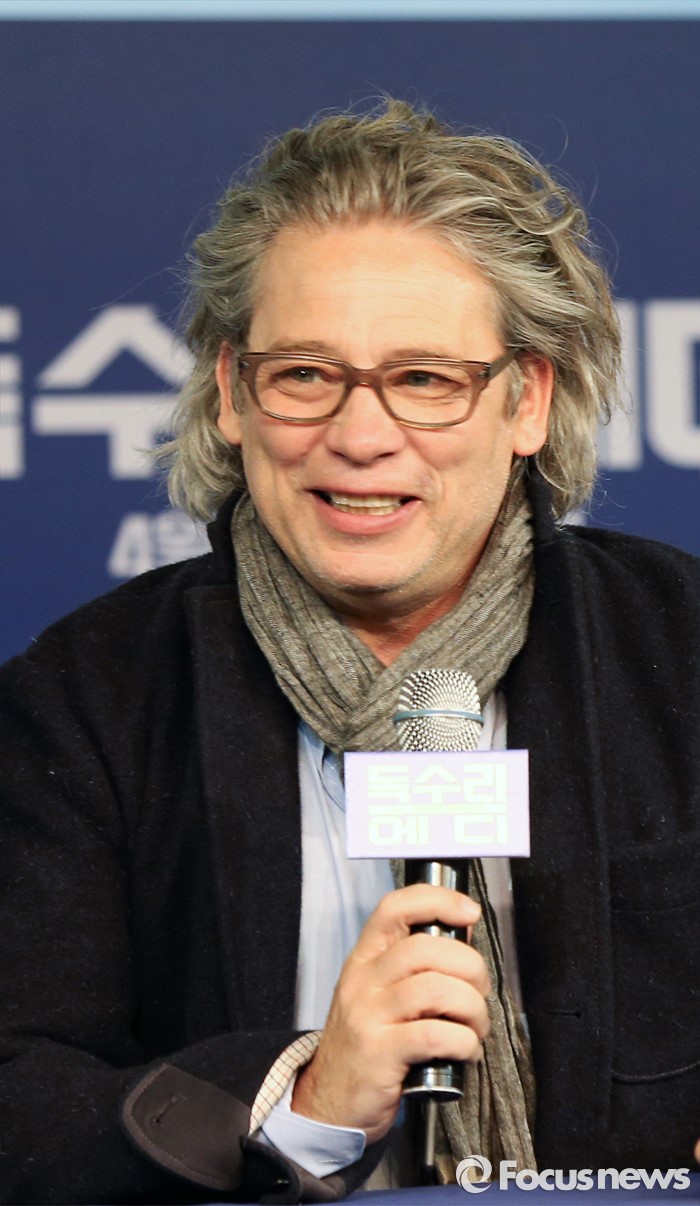 (서울=포커스뉴스) 7일 오전 서울 종로구 포시즌스 호텔 서울에서 열린 영화 '독수리 에디' 기자간담회에 참석한 영화감독 덱스터 플레처가 인사말을 하고 있다.