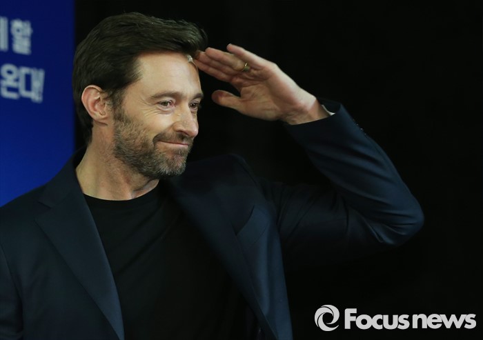 (서울=포커스뉴스) 7일 오전 서울 종로구 포시즌스 호텔 서울에서 열린 영화 '독수리 에디' 기자간담회에 참석한 배우 휴 잭맨이 취재진을 향해 인사를 하고 있다.