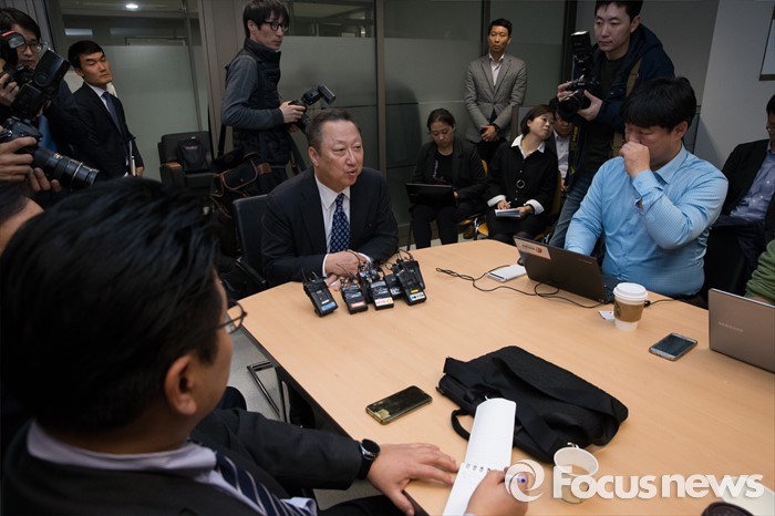 (서울=포커스뉴스) 박용만 회장이 7일 오후 서울 중구 대한상공회의소에서 열린 기자간담회에서 취재진의 질문에 대답하고 있다.