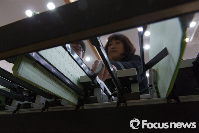 (서울=포커스뉴스) 제20대 총선을 한 달여 앞둔 7일 오후 서울 종로구 중앙선거관리위원회 선거연수원에서 투표지 분류기 담당자들이 장비점검 및 개표관리 실습교육을 하고 있다.