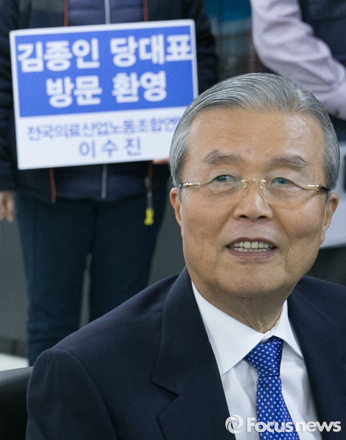 (서울=포커스뉴스) 김종인 더불어민주당 비대위 대표가 7일 오후 서울 영등포구 한국노동조합총연맹을 방문해 김동만 위원장과 대화하고 있다.