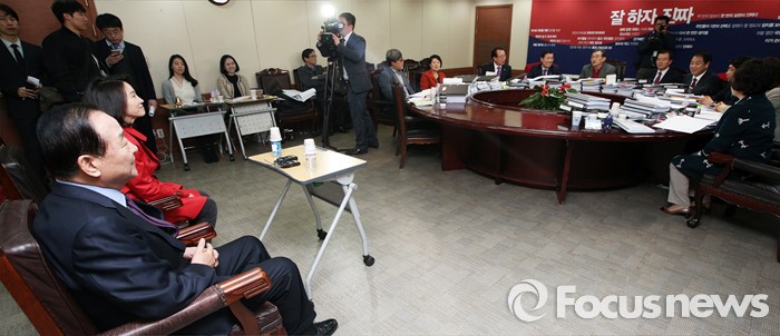 (서울=포커스뉴스) 서청원 새누리당 최고위원(경기 화성갑)이 7일 오후 서울 여의도 당사에서 열린 공천 면접에서경쟁자인 리은경 예비후보와 면접을 보고 있다.