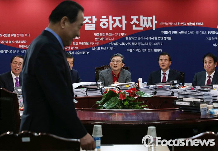 (서울=포커스뉴스) 서청원 새누리당 최고위원(경기 화성갑)이 7일 오후 서울 여의도 당사에서 열린 공천 면접에서 이한구 공천관리위원장을 비롯한 공천관리위원들이 지켜보는 가운데 자리하고 있다.