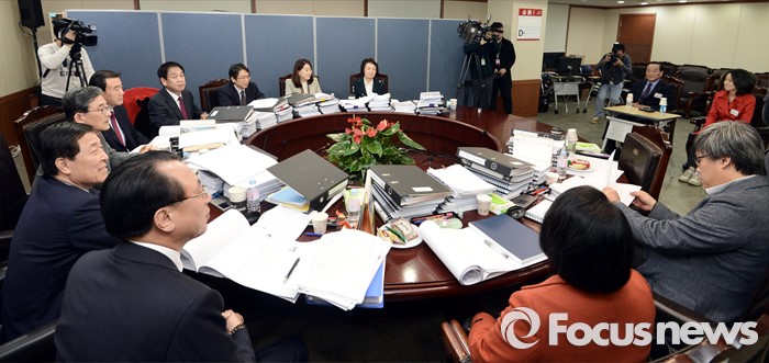(서울=포커스뉴스) 경기 화성갑에 출마 선언한 새누리당 서청원 최고위원과 리은경 예비후보가 7일 오후 서울 여의도 당사에서 열린 20대 총선 선거구 획정과정에 분구·통합된 경기·충청·강원지역의 공천신청자면접에 참석해 이한구 공천관리위원장에게 질문을 듣고 있다.