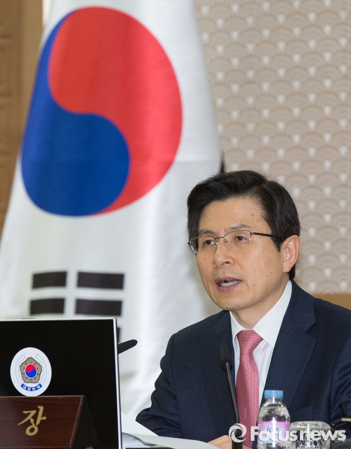 (세종=포커스뉴스) 황교안 국무총리가 8일 오전 세종시 정부세종청사 국무회의장에서 서울-세종 영상회의로 열린 국무회의에 참석해 회의를 주재하고 있다.