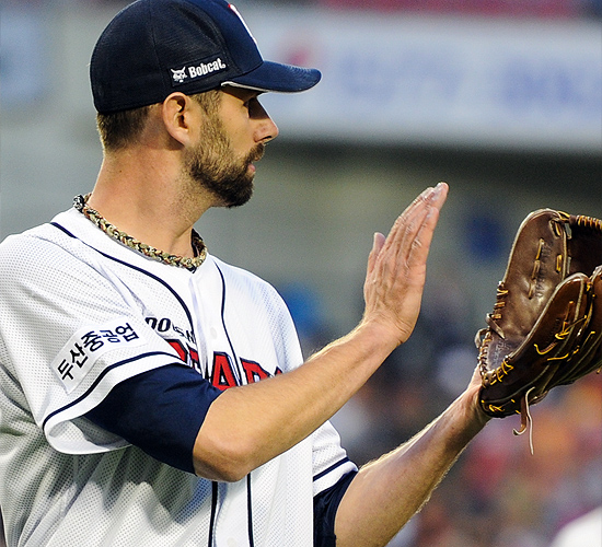 두산은 7일 "'두산밥캣'과 2년 연속 광고 프로모션 계약을 맺었다. 올시즌 선수들은 오른쪽에 '밥캣' 로고가 달린 모자를 쓰고 경기를 치른다"고 밝혔다. 전광판, 팬북, 홈페이지에서도 '밥캣'을 홍보한다. 밥캣은 건설, 산업, 조경, 농업 시장에서 사용하는 소형 건설장비 회사다.프로야구 두산이 '두산밥캣'과 2년 연속 프로모션 계약을 체결했다. 사진은 두산 외국인선수 니퍼트 모자에 '두산밥캣' 로고가 부착된 모습. <사진제공=두산 베어스>