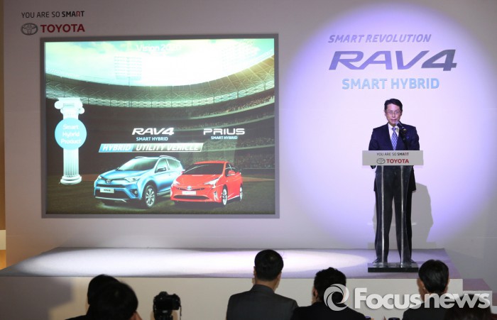 (서울=포커스뉴스) 한국토요타자동차는 8일 자동차 복합문화공간 서울 송파구 코넥투에서 ‘2016 올뉴 RAV4 하이브리드’의 발표회를 겸한 기자간담회를 갖고 ‘세 가지 스마트(Smart)’를 축으로 하는 2016 토요타브랜드 경영방침을 발표했다.