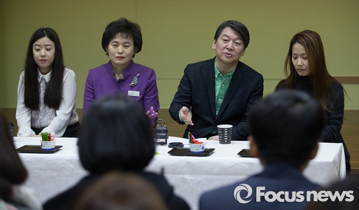 (서울=포커스뉴스) 노원병 출마 선언 기자회견을 마친 안철수 국민의당 상임공동대표가 8일 오전 서울 노원구 동일로의 한 유치원에서 학부모 간담회를 하고 있다.