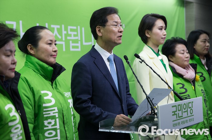 (서울=포커스뉴스) 국민의당 천정배 공동대표가 8일 오후 서울 마포구 국민의당 당사에서 여성 예비후보들과 함께 여성 정책발표를 하고 있다.
