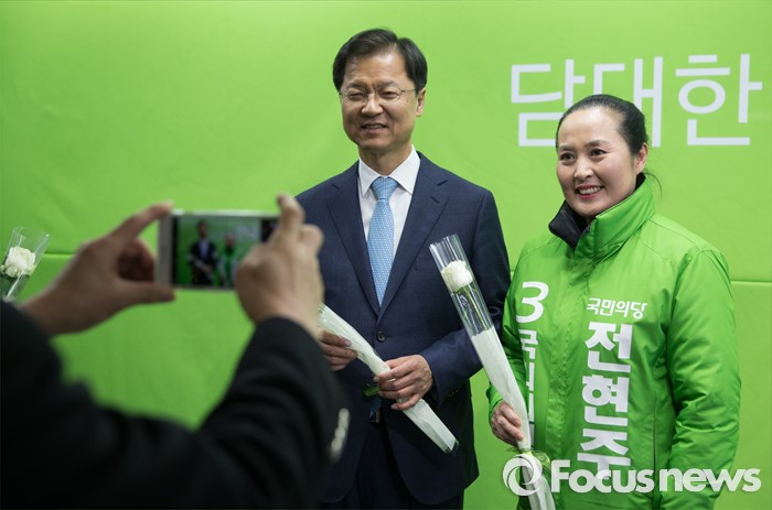 (서울=포커스뉴스) 국민의당 천정배 공동대표가 8일 오후 서울 마포구 국민의당 당사에서 여성 예비후보들과 함께 여성 정책발표를 마친 후 기념사진을 찍고 있다.