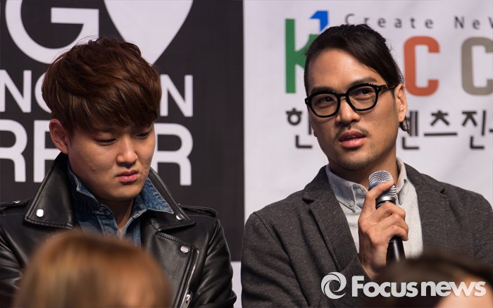 (서울=포커스뉴스) 8일 오후 서울 중구 문화창조벤처단지에서 열린 '2016 케이팝 해외 쇼케이스'에 참석한 가수 국카스텐이 취재진 질문에 답변하고 있다. 이번 행사에 참가하는 가수는 자이언티와 마마무, 바이바이배드맨, 하임, 러브 엑스테레오, 피해의식, 바버렛츠, 단편선과 선원들, 국카스텐, 이디오테잎, 이루펀트, 에고펑션에러로 총 12개팀이다.