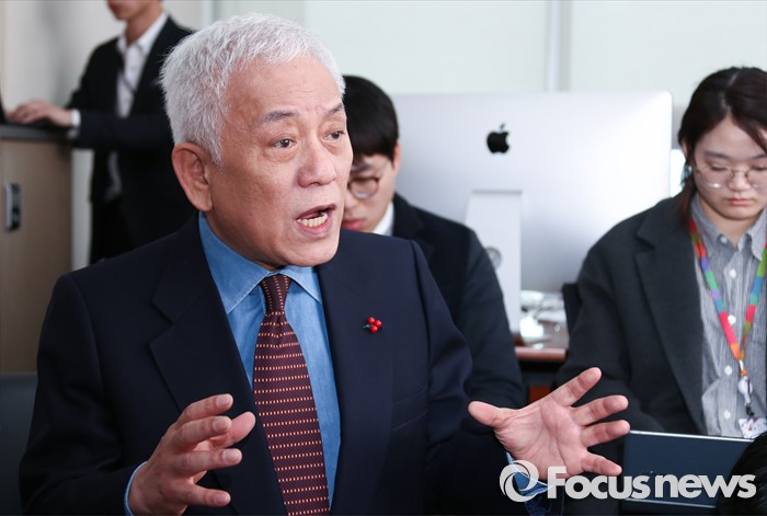 (서울=포커스뉴스) 김한길 국민의당 상임선대위원장이 8일 오후 서울 여의도 국회 의원회관 집무실에서 기자간담회를 통해 현안에 대한 입장을 밝히고 있다.
