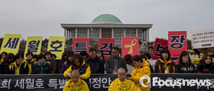 (서울=포커스뉴스) 8일 오후 서울 영등포구 국회 앞에서 열린 '19대 국회 세월호 특별법 개정안 특검 처리 촉구 기자회견'에 참석한 4.16가족협의회 관계자들이 정부에 세월호 참사 특검처리 약속 이행을 촉구하며 삭발 하고 있다.