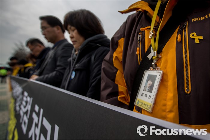 (서울=포커스뉴스) 8일 오후 서울 영등포구 국회 앞에서 열린 '19대 국회 세월호 특별법 개정안 특검 처리 촉구 기자회견'에 참석한 4.16가족협의회 및 관련 시민단체 관계자들이 정부에 세월호 참사 특검처리 약속 이행을 촉구 하고 있다.