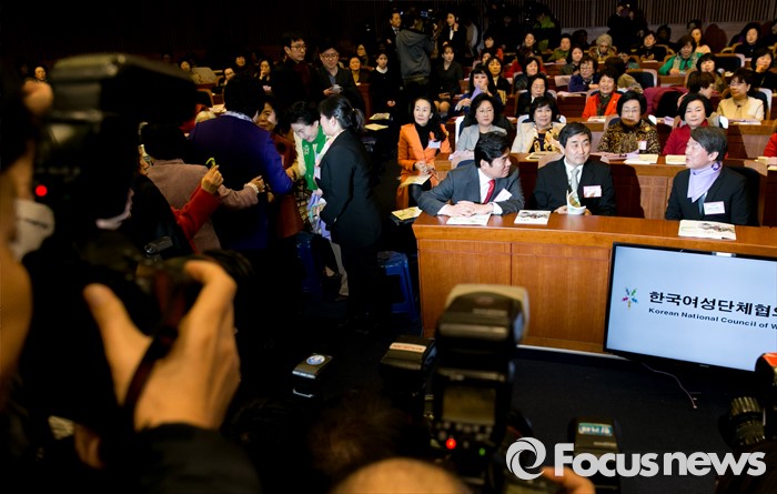 (서울=포커스뉴스) 8일 오후 서울 여의도 국회 헌정기념관에서 열린 세계 여성의 날 기념대회에 참석한 원유철(왼쪽부터) 새누리당 원내대표, 이종걸 더불어민주당 원내대표, 안철수 국민의당 상임공동대표가 대화하고 있다.