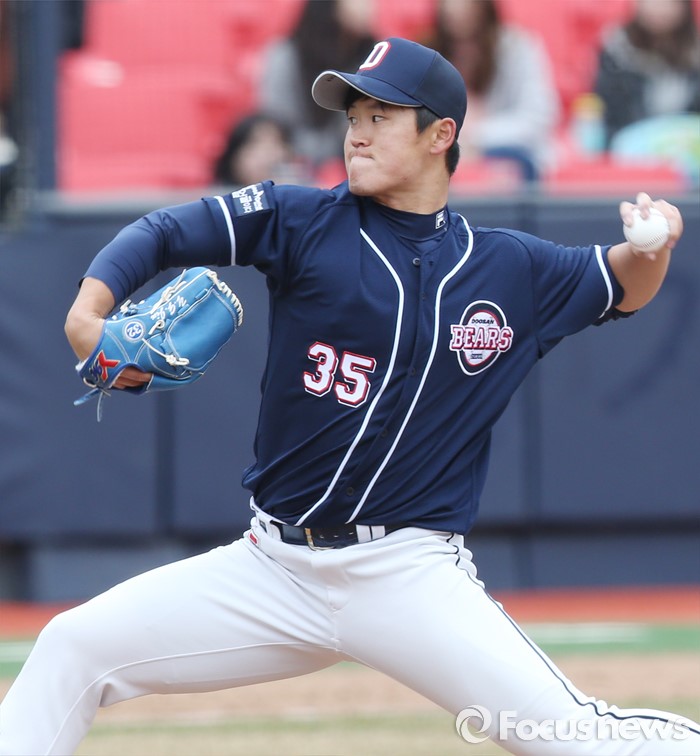 (수원=포커스뉴스) 8일 수원 kt위즈파크에서 열린 2016 KBO리그 시범경기 두산-kt 경기에서 두산 투수 진야곱이 투구하고 있다.