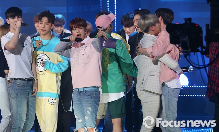 (서울=포커스뉴스) 8일 오후 서울 마포구 SBS프리즘 타워에서 열린 '2016 더쇼 62회' 생방송 촬영 현장에서아이돌 그룹 B.A.P가 앵콜 무대를 선보이고 있다.