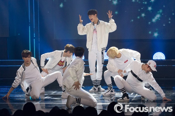 (서울=포커스뉴스) 8일 오후 서울 마포구 SBS프리즘 타워에서 열린 '2016 더쇼 62회' 생방송 촬영 현장에 아이돌 그룹 아스트로가 무대를 선보이고 있다.