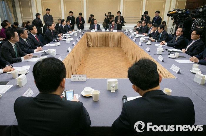 (서울=포커스뉴스) 9일 오전 서울 여의도 국회 귀빈식당에서 경제활성화를 위한 민·당·정 간담회가 진행되고 있다. 이날 간담회에는 김정훈 새누리당 정책위의장, 조원진 원내수석부대표, 이기권 고용노동부 장관, 최상목 기획재정부 1차관, 이동근 대한상의 상근부회장, 이승철 전경련 상근부회장 등이 참석했다.