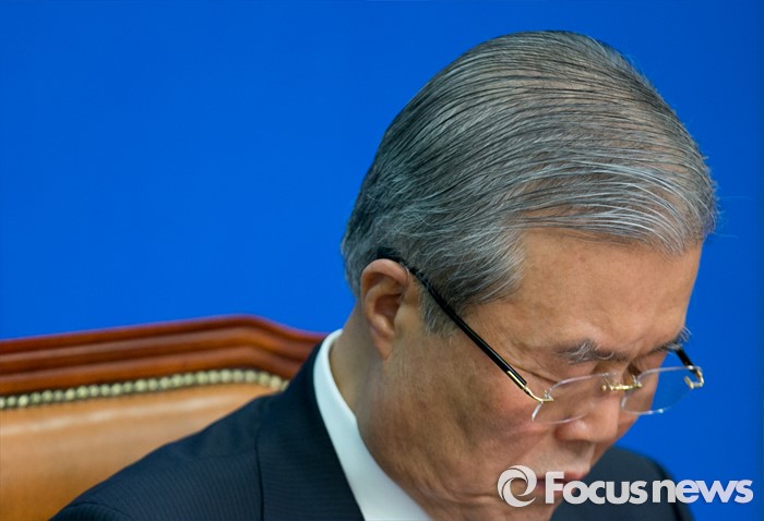 (서울=포커스뉴스) 김종인 더불어민주당 비대위 대표가 9일 오전 서울 여의도 국회에서 열린 비상대책위원회의에 참석해 생각에 잠겨 있다.