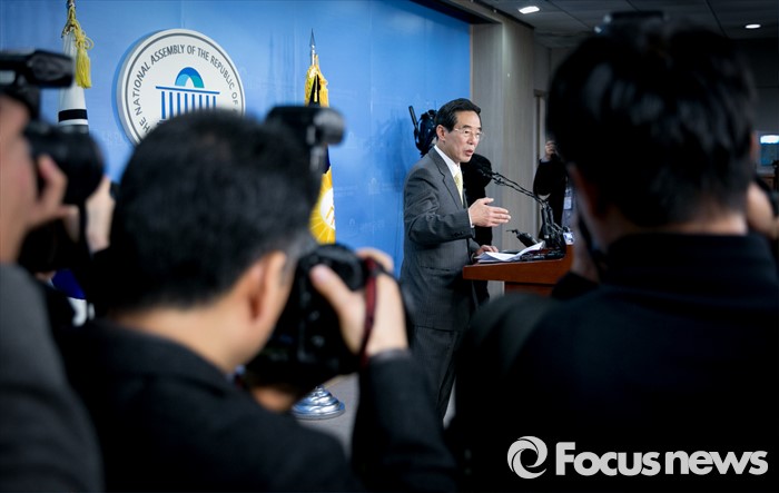 (서울=포커스뉴스) 홍창선 더불어민주당 공천관리위원장이 9일 오전 서울 여의도 국회 정론관에서 20대 총선 1차 경선지역과 관련 브리핑을 하고 있다. 홍 위원장은 이날 브리핑 중 취재관행을 바꾸기 위한 언론인과 대화를 하던 중 일부 항의를 받았다.