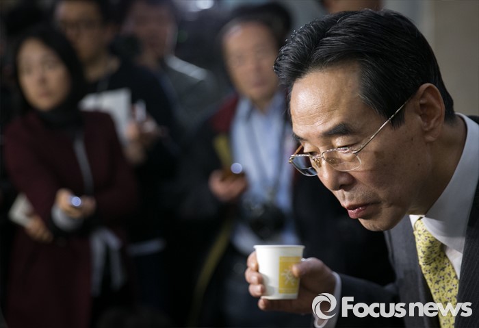 (서울=포커스뉴스) 홍창선 더불어민주당 공천관리위원장이 9일 오전 서울 여의도 국회 정론관에서 20대 총선 1차 경선지역과 관련 브리핑을 마친 뒤 취재진 질문을 듣고 있다. 홍 위원장은 이날 브리핑 중 취재관행을 바꾸기 위한 언론인과 대화를 하던 중 일부 항의를 받았다.